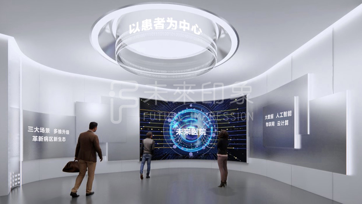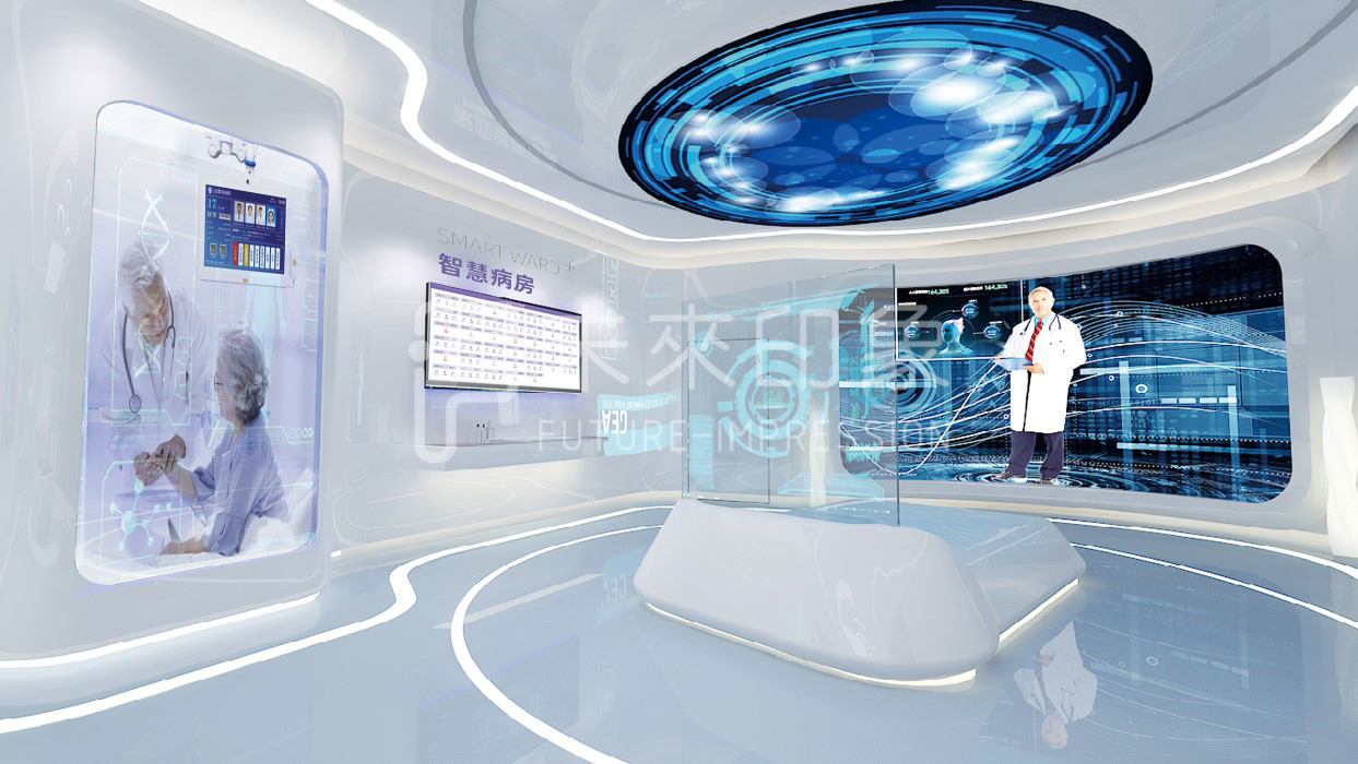 在展廳的前期策劃階段,未來印象展廳設(shè)計(jì)團(tuán)隊(duì)就在思考一個(gè)問題,如何體現(xiàn)出“科技賦予醫(yī)療溫度”的品牌精神內(nèi)核?如何在有限的空間內(nèi)展現(xiàn)智慧病房新未來!