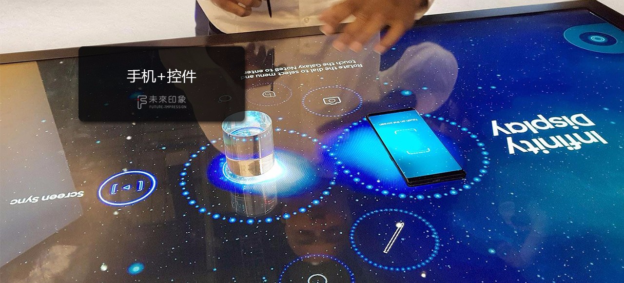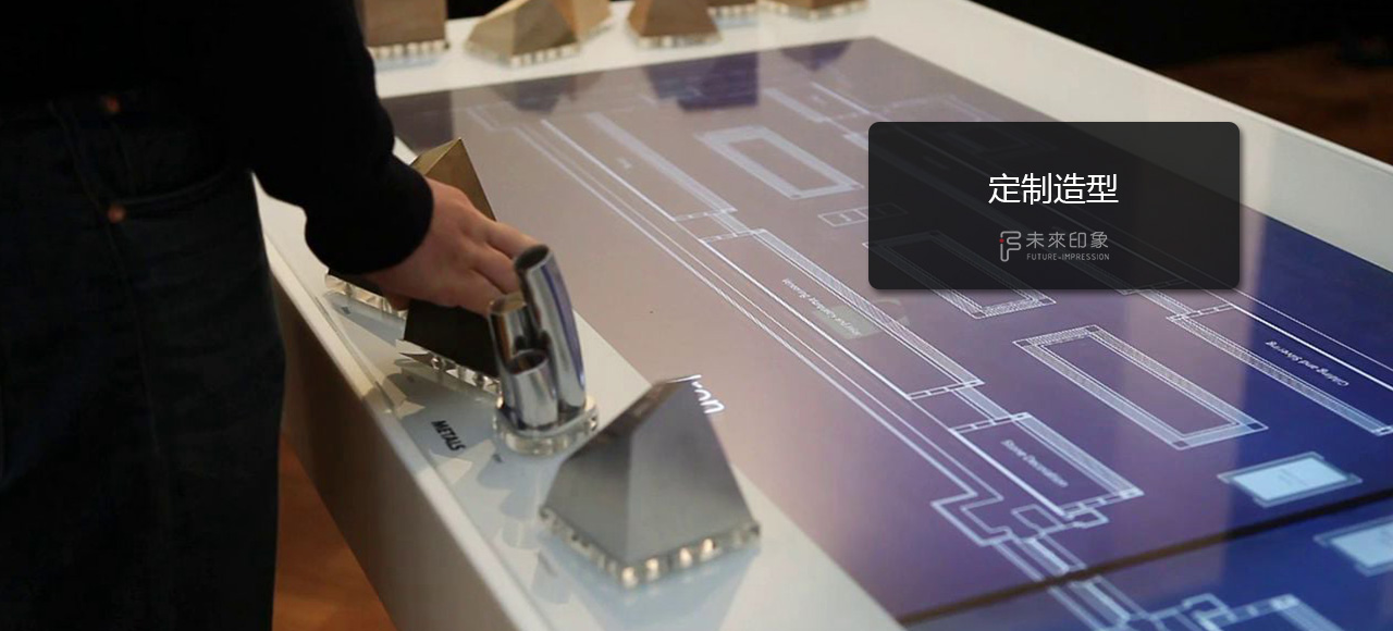 實(shí)體互動(dòng)桌是普通觸摸屏的升級(jí)版,將識(shí)別組件裝入立體造型中,屏幕通過(guò)識(shí)別組件信號(hào)演繹數(shù)字內(nèi)容。該展示形式的優(yōu)勢(shì)主要在于指向性較強(qiáng),在眾多展項(xiàng)中能第一時(shí)間吸引體驗(yàn)者的注意,互動(dòng)形式也相對(duì)有趣自然。這種展示手法適用于展示產(chǎn)品或解決方案等企業(yè)的核心業(yè)務(wù),具有比較強(qiáng)的可塑性。
